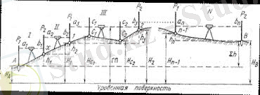 Мұнда және -бастапқы және соңғы реперлердің абсолюттік биіктіктері;