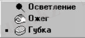 Мұнда бізге таныс Аэрограф, Кисть, Карандаш, Ластик аспаптары бар.