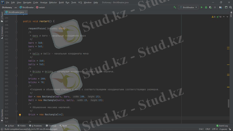 экзаменнің 2 курс студентінің “Brick Breaker” проект тапсырмасына