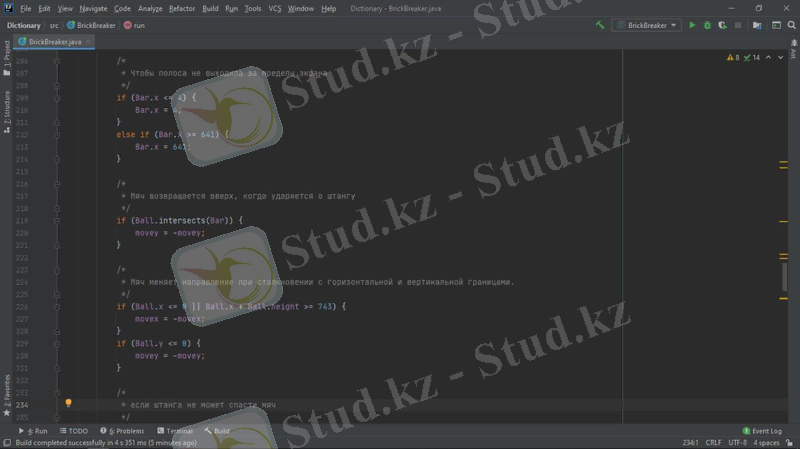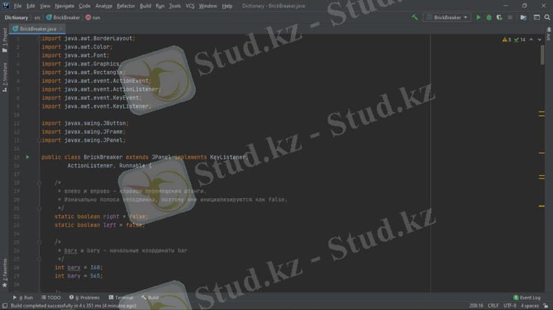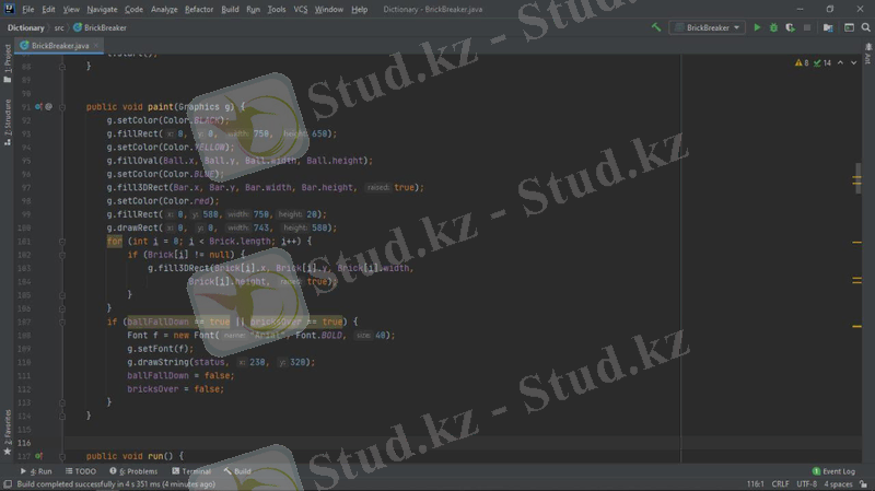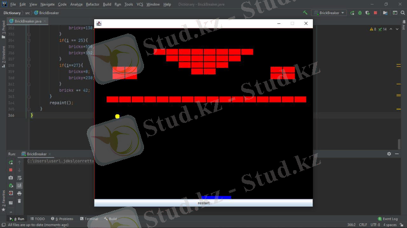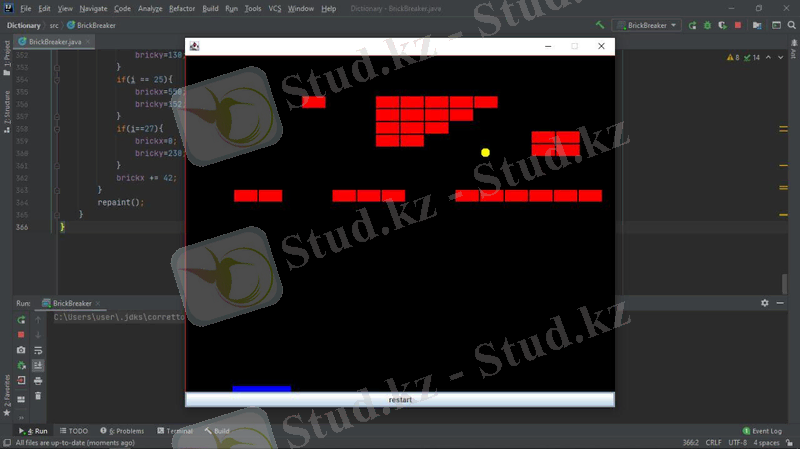 Java тілінде Brick Breaker ойынын әзірлеу - әл-Фараби атындағы ҚазҰУ Механика-Математика факультеті Математикалық және компьютерлік модельдеу кафедрасының 2-курс қорытынды жобасы