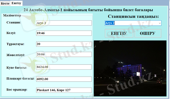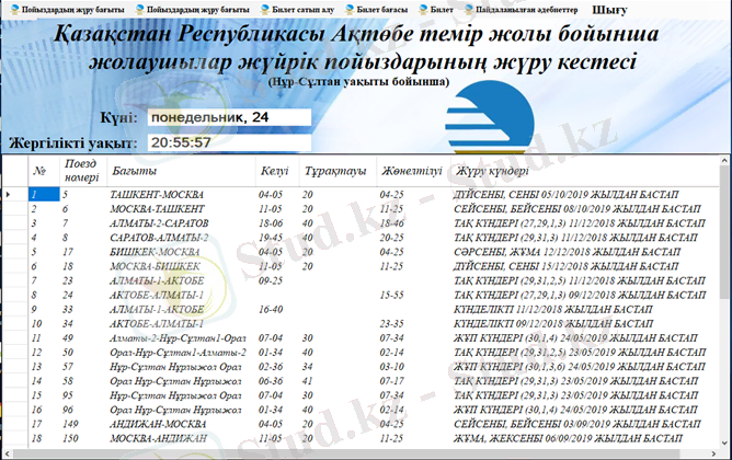 Ақтөбе темір жол вокзалы бойынша өтетін әрбір пойыздың таңдалған бағыттарына сәйкес билеттерді сатып алу жүйесі 5. 1., 5. 2., 5. 3 - суреттерде көрсетілген.