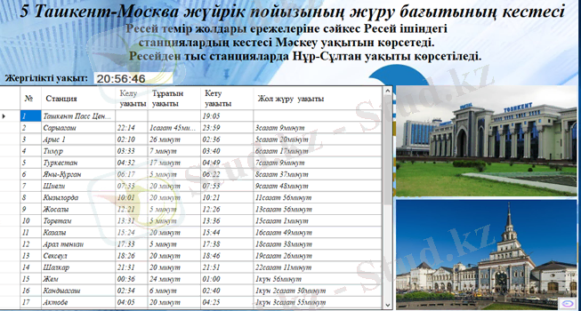 2. Негізгі кестедегі әр пойыздың жол жүру маршрутын жеке кестеде көре аламыз. (Қай уақытта қай станцияға келуі, әр станциядағы тоқтау уақыты және жол жүру ұзақтығы) .