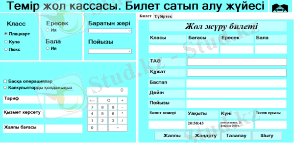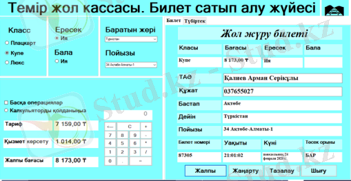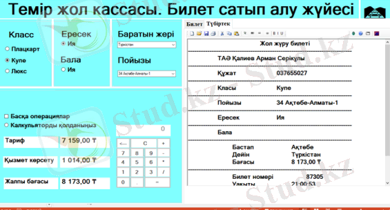 3. Билетті сатып алу әрекетін орындай аламыз және оның түбіртегі тексттік құжатта сақталады да содан шығарып алуымызға болады. (Төлемсіз)