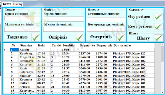Ақтөбе теміржолы бойынша жүретін пойыздардың бағыты, жүру күндері туралы деректер қоры 3-суретте көрсетілген.