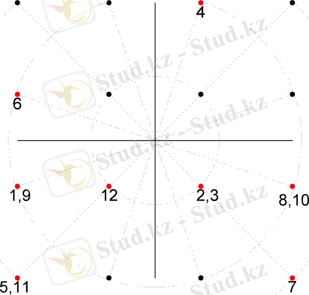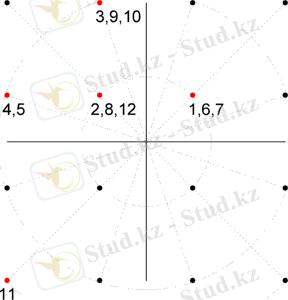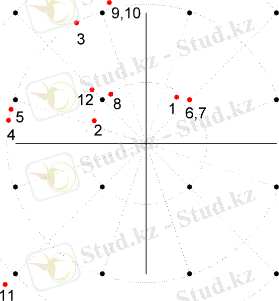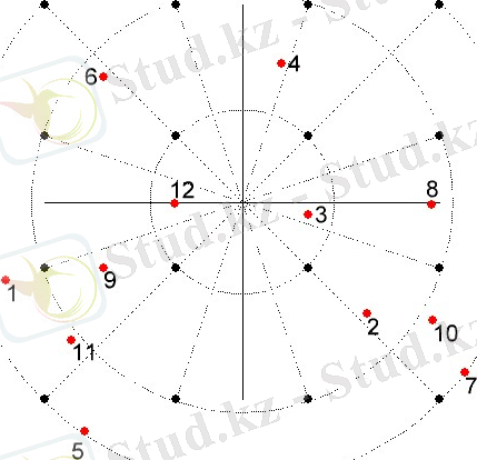 Сигнал қалай берілгенін графикалық түрде фазалық жазықтықта көрсетеміз. 4-суретте дабыл шоқжұлдызында берілетін хабарламаның таралуы көрсетілген. Сан есептеудің реттік нөмірін көрсетеді.
