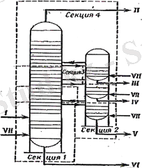 1. 4-сурет. Бүйірінен шығарылған айдау секциялары күрделі ректификациялық колоннаның сызбанұсқасы.