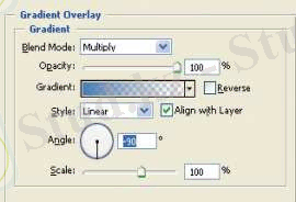Осыдан кейін Layer Style (Қабат стилі) терезесін жаппай тұрып, құрылған стильге 6-суреттегі баптауларды бере отырып Gradient Overlay (Градиентті орнату, Наложение градиента) әсерін қосыңыз. Егер барлығы дұрыс орындалса, онда нәтижесі 7-суреттегіге сәйкес келуі керек.
