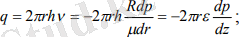 (7) Мұндағы R-қабат өткізгіштігі; μ -динамикалық тұтқырлық; dp/dz-радиус ішіндегі градиент қысым. Сұйықтың жоғалу көлемі мынаған тең