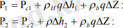 (6) мұндағы 1 ∆h және 2 ∆h -ұңғы түп белгісінің және ағымдағы ұңғы түбі, ағымдағы су -мұнайлы қатынас әр-түрлі, ρ b -қабаттағы су тығыздығы.