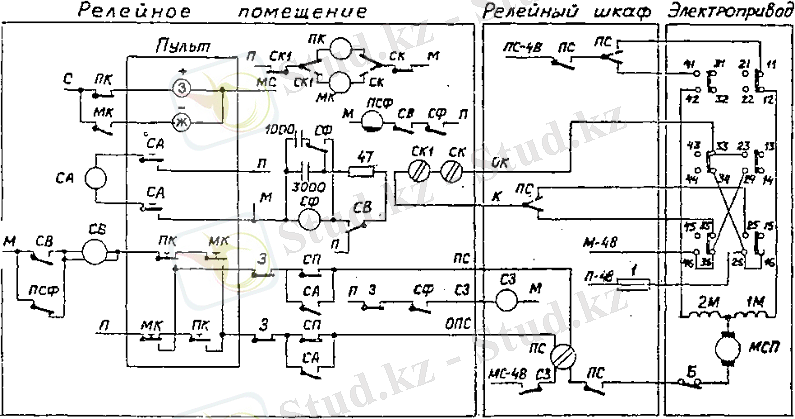 Бұл шарттар сұлбаның басқару тізбегінде СП бағыттағыш-жол релесінің контактілерімен және тұйықтау релесімен З тексеріледі.