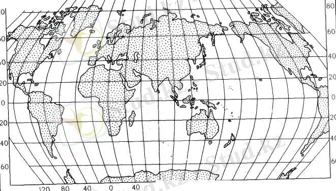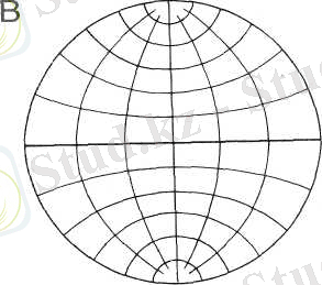 Шартты проекциялар. Шартты проекцияларды жобалау кезінде қандай да бір жазықтық бетіне жобалау мүмкін емес. Оны көбінесе аналитикалық заңмен алады (формулалардың көмегімен жасалынады) . Бұл өте үлкен проекциялар тобы. Осылардың картографиялық торлардың сыртқықасиеттері бойынша псевдоцилиндрлік проекциялар ерекшеленеді (сурет 6) . Суретте көрсетілгендей, псевдодилиндрлік проекцияларда экватор мен параллельдер - түзу, бір- біріне параллельді (ол цилиндрлік проекцияларға ұсас), ал меридиандар - қисық сызықтар.
