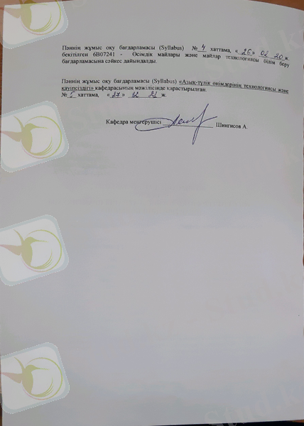 Пәннің пререквизиттері: Өсімдік өнімдерін өңдеу және сақтау, Өсімдік шикізаттарын өңдеудің физико-химиялық негіздері және жалпы принциптері, Өңдеу өндірістері өнімдерінің биохимиясы.