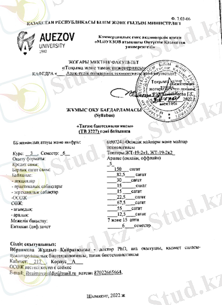 Тағам биотехнологиясы: микроорганизмдер қолданылатын өндірістік процестер мен технологиялар бағдарламасы