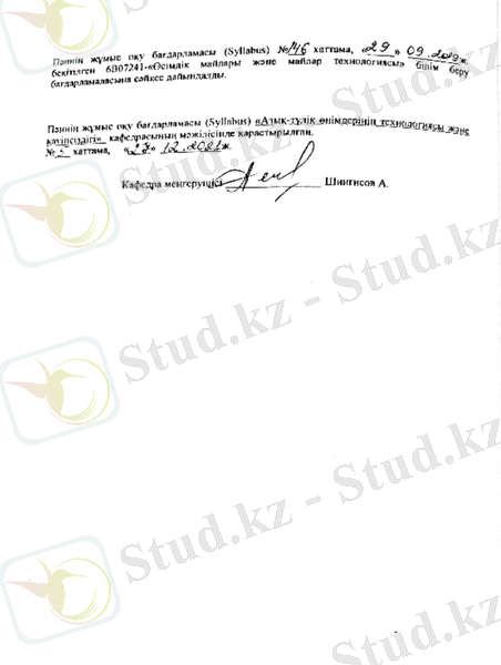 Пререквизиттер: тағам химиясы, тағам өнімдері технологияларының теориялық негіздері, азық-түлік өнімдері салаларының технологиясы