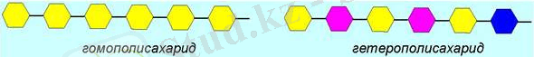 - гетерополисахаридтер - бірнеше моносахаридтерден тұрады.