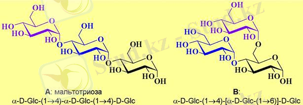 сызықты олигосахаридтер - моносахаридтердің қалдықтары бір-бірімен тізбектей байланысқан, мысалы, мальтотриоза (трисахарид А) ;