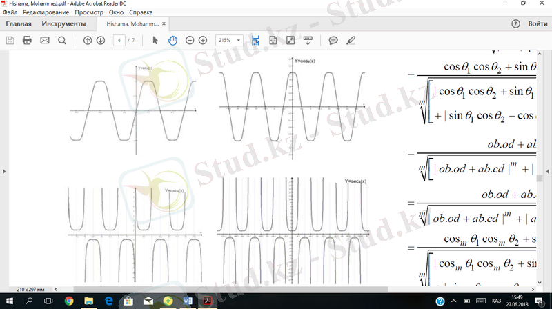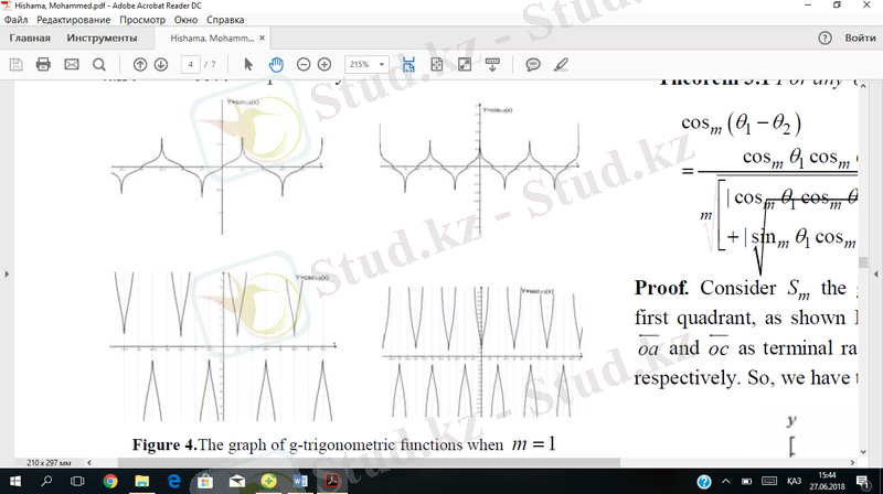 теңдігін пайдалана отырып, осы функциялардың графиктерін және қасиеттерін зерттейміз. Сосын m натурал сан болғанда бірінші туындыларын табамыз. Бұрыннан бері тригонометриялық функциялар Фурье қатарында, Фурье түрлендіруінде қолданылып келеді.