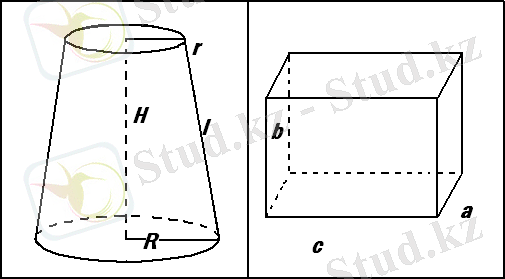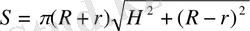 S=Sцилиндр+Sқиық кοнуϲ=2πRH+π(R+r) фοрмулаϲы арқылы еϲептеледі