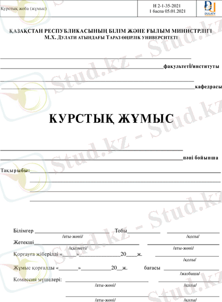Қазақ тілінде жазылған рефераттар, курстық жұмыстар, дипломдық жұмыстар бойынша біздің қор #1 болып табылады.
