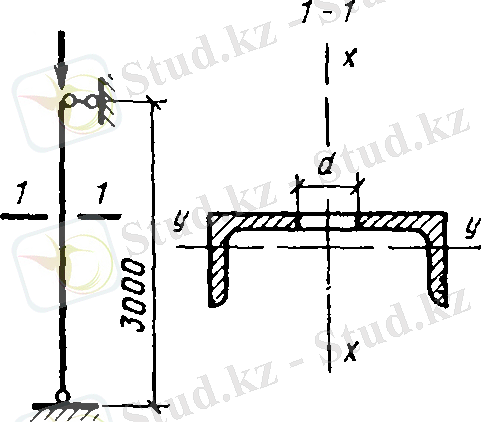 Есеп 1. 8 . . ВСт3пс6 маркалы болат прокаттық швеллерден жасалған байланыстың сығылған элементінің жүккөтергіштігін анықтау. Элемент қимасы диаметрі d тесіктермен әлсіздендірілген. Х және У остері жазықтықтарында элемент ұштары топсалы бекітілген.