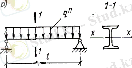 Есеп 1. 29 Қабат аралық жабынның қосалқы арқалығы үшін прокаттық қоставр таңдау жасау. Арқалық 09Г2С маркалы болаттан жасалған. Жүктеу бойынша сенімділік коэффициенті γ f = 1, 2. Арналуы бойынша сенімділік коэффициенті γ n = 0, 95.