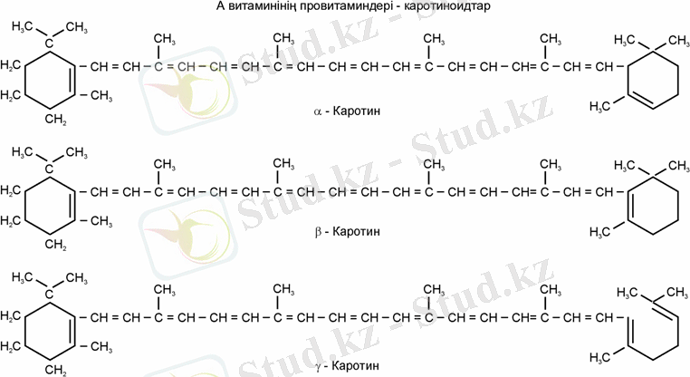 А витамині тек жануардан алынған азықтарда болады: балық майында, бауырда, етте, жұмыртқада, сары майда, т. б. Ал өсімдіктерде А витаминінің провитаминдері - каротиндер түзіледі. Каротиндер (лат. сarota - морковь) - ең алғаш сәбізден бөлінген, сары түсті пигменттер.