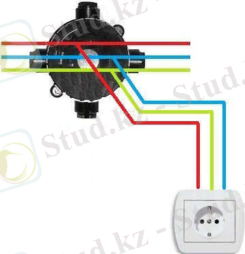 Енді бір, екі немесе одан да көп розеткаларды қосу үшін сымдарды түйіспелі қорапқа қалай қосу керек деген сұраққа көшеміз. Мұны істеу үшін бізге барлық розеткалардың жалпы жүктемесіне сәйкес келетін қимасы бар үш сымды сым қажет. (7. 5-сурет)