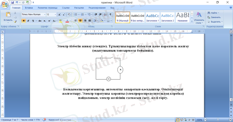 Электр тізбегін жинау (стендте) . Тұтынушыларды тізбектеп және параллель жалғау (оқытушының тапсырмасы бойынша) .