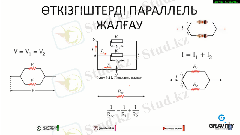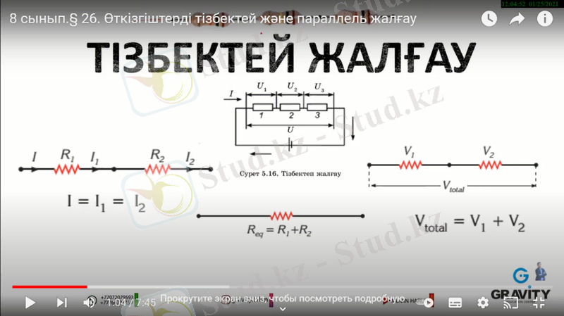 Кернеу тізбекке параллель жалғанады V=V 1 =V 2