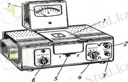 1 - бөлім қақпағы; 2 - «Дәл» тұтқасы; 3 - «Жуық - 100» тұтқасы; 4 - тұтқа; 5 - тұтқа; 6 - бұранда; 7 - микроамперметр.