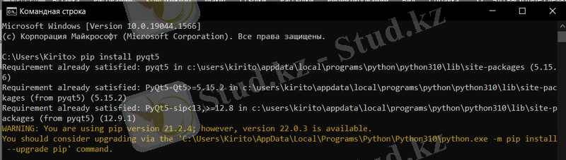 13-сурет. pyqt5 тің дұрыс орнатылуының тексеріліуі