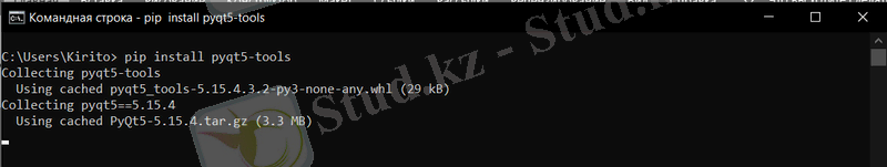Ары қарай барлығы дұрыс әрі қателіксіз жасау үшін консольді ашып керекті библиотекаларды жазамыз. Ол pyqt5 және pyqt5-tools дегендерді жазамыз.
