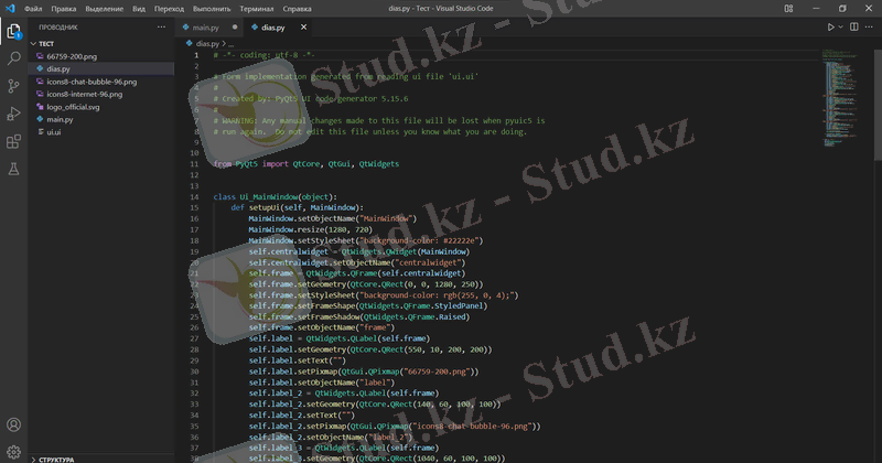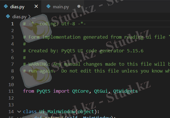 Көріп тұрған ui. py ол біздің интерфейсіміздің питон кодына айналған кезі (16-сурет)