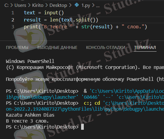 3-сурет. Мәтінде неше cөз бар екенін есптейтін команда