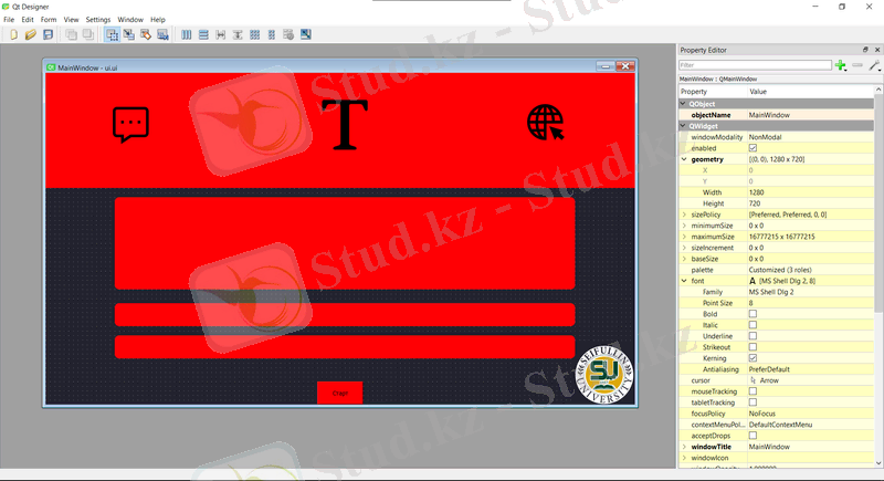 QtGui - графикалық интерфэйс құрамдас бөлігі