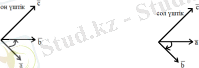 Анықтама . Бас нүктелері бір нүктеге кондырылған компланар емес реттелген векторлар үштігі оң үштік деп аталады, егер векторының ұшынан қарағанда дан ға ең кіші бұру сағат тіліне қарама-қарсы болса, ал сағат тілімен орындалса сол үштік деп аталады.