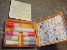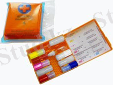 - 7 ұя - көк түсті пеналда қүсуға қарсы дәрі-дәрмек, барлығы 5 таблетка. Бас сыдырылғанда, қатты соққы тигенде және контузия алғанда сәуленің бастапқы әсері кезіндө бір таблеткадан қабылдайды.
