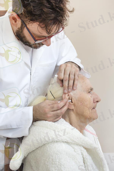 5. Құлақ күтімі. Жалпы режимдегі науқастар таңертең ұйқыдан тұрғаннан кейін құлақтарын жуу керек. Ажан ұзақ уақыт төсек тартып жатқан сырқат құлағын оқтын-оқтын тазалап тұруы тиіс, себебі адамның құлағына құлық қатса, ол нашар еститін болады. Құлақты 3 проценттік сутегі тотығыың ерітіндісін тамызып тазартады. Егер құлық көп болса, оның үстіне қатып қалған болса, онда шашамен 150 мл - дей сутегінің тотығын резеңке баллонымен немесе жаңа щприцімен жіберіп, жуып-тазалайды.
