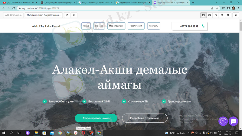 Алакөл-Ақши демалыс аймағын автоматтандыруға арналған ақпараттық-анықтамалық мобильді қосымша мен веб-сайтты әзірлеу