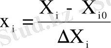 Мұндағы: xi-кодталған, ал Xi i-ші фактордың табиғи мәні. Xi0 - негізгі деңгейдегі i-ші фактордың табиғи мәні.