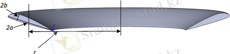 Ұшақтың қанатының аэродинамикалық профилінің формасы бекітілген өлшемдерге ие. Алайда ұшақтың қанатының әр профиліне аэродинамикалық профильдің биіктігі мен ұзындығының тәуелділігі әртүрлі. Таңдалған профиль Р-ІІ-14% (ЦАГИ-718) . Атауынан таңдалған профильдің биіктігі профильдің ұзындығының b=a ∙ 0. 14 14% тең екендігін білуге болады.