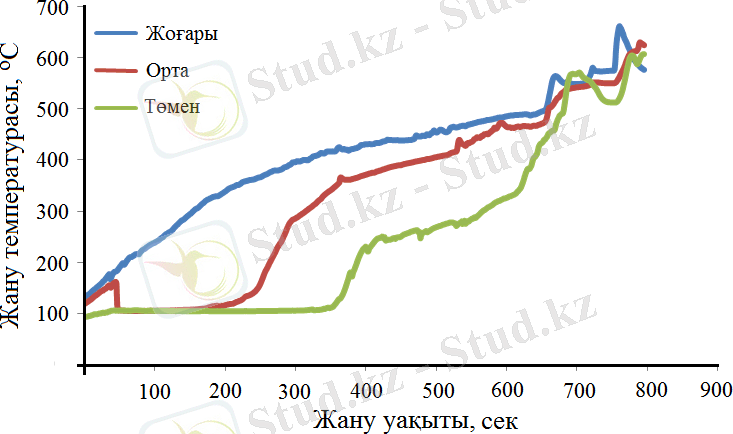 Ерітіндіде жану барысында температураны өлшеу барысында температуралық қисықтың бойында екінші шың пайда болды, 12-сурет.