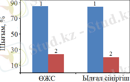 Белгіленулері: 1 - 60% Co - 40% Al/60% карбамид, 2 - 30% Co - 70% Al/60% карбамид, W = 860 сағ -1 .
