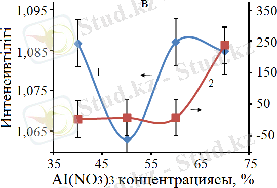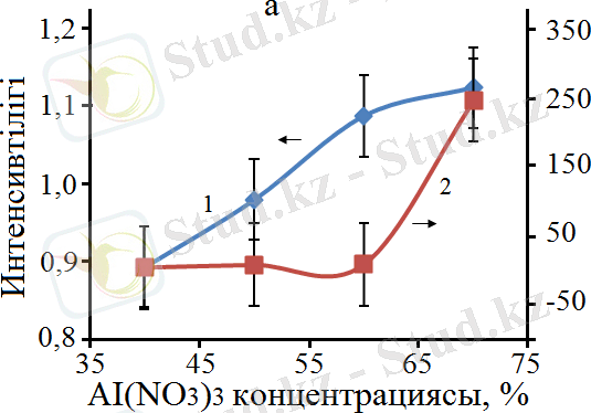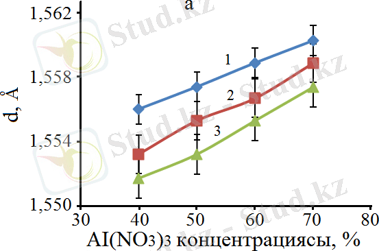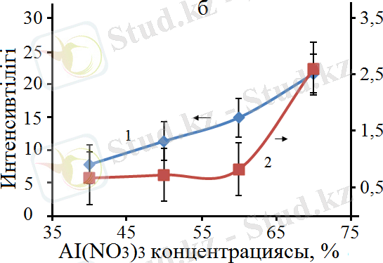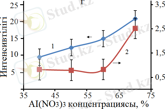 Сурет 13 - Бастапқы қоспадағы Al(ΝΟ 3 ) 3 концентрациясына байланысты рентген шыңдарының интенсивтілігінің өзгеруі
