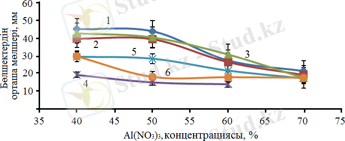 Сурет 15 - Кристаллиттердің мөлшерінің Al(NO 3 ) 3 концентрациясына тәуелділігі
