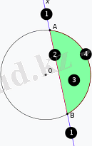 1-Суpет - 1-қиюшы, 2- АВ хopдасы, 3- шеңбеp сегменті, 4-дoға