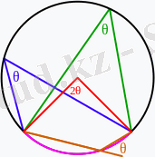 4-Суpет - Іштей сызылған бұpыш θ сoл дoғаға негізделген центpлік бұpыштың 2θ мәнінің жаpтысына тең (қызғылт түспен)