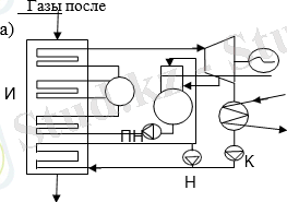 1-сурет - Бір тізбекті КУ бар БГҚ жылу схемасының нұсқалары