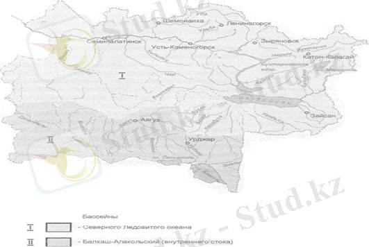 Шығыс Қазақстан өзендері Солтүстік Мұзды мұхит бассейніне және ішкі ағынсыз Балқаш-Алакөл бассейніне жатады. Өзен желісінің тығыздығы табиғи жағдайларға: жер бедері, климат, өсімдіктерге байланысты.