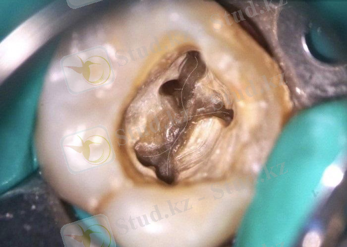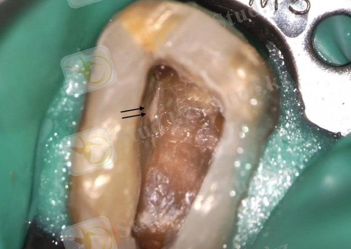 Материалдар мен әдістер. МБ2-ны сәтті анықтау және өткізу үшін қажет, оған жақсы жарықтандырылған бинокулярлар және эндо үшін ұзын, төмен жылдамдықты дөңгелек бор немесе ультрадыбыстық тұлба кіреді. Жоғарыда айтылғандай, үлкейту каналды табуда сәттілік ықтималдығын едәуір арттырады, ал дентин сөресін алып тастау үшін бор немесе тұлба қажет. Егер тіс қатты кальцификацияланған болса, сізге 2-3 мм тереңдеу қажет болуы мүмкін. Маңызды: МБ2-ге кіру оңай емес. Егер дентинді тегістеу бағыты дұрыс таңдалмаса, перфорация ықтималдығы жоғары. . Тұлбадағы бор көру аймағының едәуір бөлігін жабады, яғни сіз дұрыс көрмей жұмыс істеуге тура келеді, бұл нәтижеге теріс әсер етуі мүмкін.
